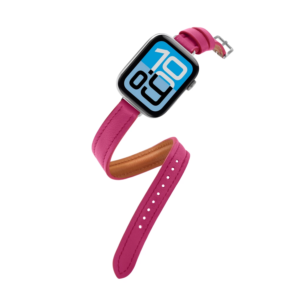 Correa de doble vuelta para Apple Watch de 42 mm - Plata - Fucsia - Piel de becerro