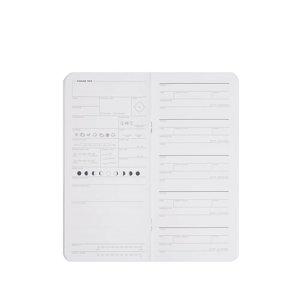 Este recambio para su cuaderno de pesca de la Colección Alpine está diseñado para pescadores que valoran la precisión y el detalle. Registre cada aspecto de sus aventuras en la jornada de pesca, incluidas las especies capturadas, la longitud, el peso y el estado de cada pez. Registre algunos de los factores ambientales esenciales como la presión barométrica, la temperatura del aire y del agua, la humedad, las mareas y las fases lunares para analizar patrones y perfeccionar su rendimiento en el agua.