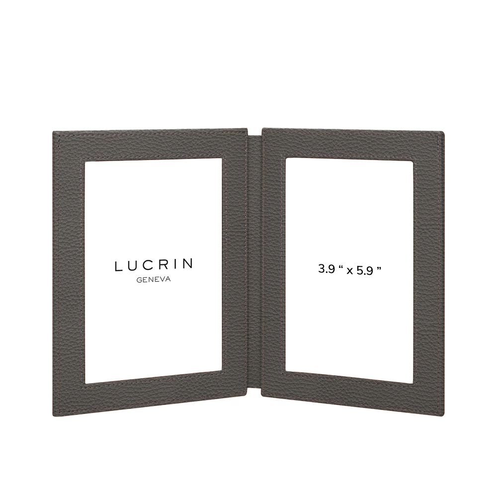 Marco para dos fotos 14,5 x 19 cm. Gris Ratón  - Piel Grano