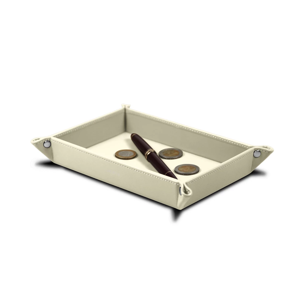 Esta bandeja rectangular organizadora de piel es uno de los productos que mejor se venden de nuestra colección de bandejas multifunción. Su formato rectangular y minimalista le permite tener en un solo lugar y de forma sencilla su smartphone, monedas, notas, plumas, llaves del coche y otros objetos. Puede por lo tanto vaciar el contenido de sus bolsillos en esta elegante bandeja de piel que puede colocarse cerca de la entrada, en una cómoda o en el escritorio de su oficina. Así, cuando salga de casa o de la habitación, podrá estar seguro de llevarse todos esos objetos esenciales de una sola vez. Esta bandeja fabricada en cuero está disponible una amplia gama de colores y tipos de piel.