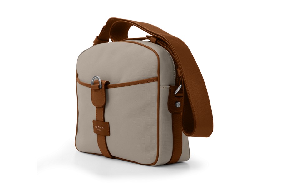 Lucrin Designer Collection presenta esta exclusiva bandolera pequeña. Este bolso, hecho de lona de calidad superior con acabados de piel, es para usted. Su volumen y su diseño lo convierten en el compañero perfecto para hacer algunos recados, por ejemplo.