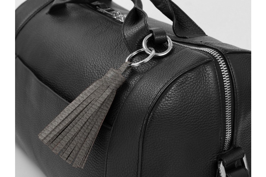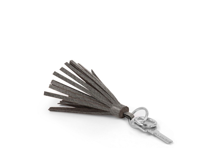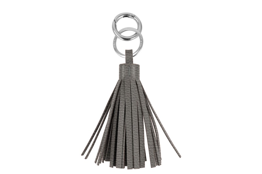 Llavero con borla - Gris Ratón - Piel Grano