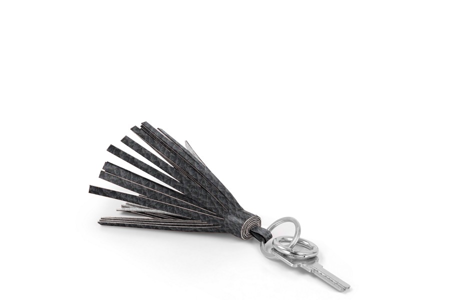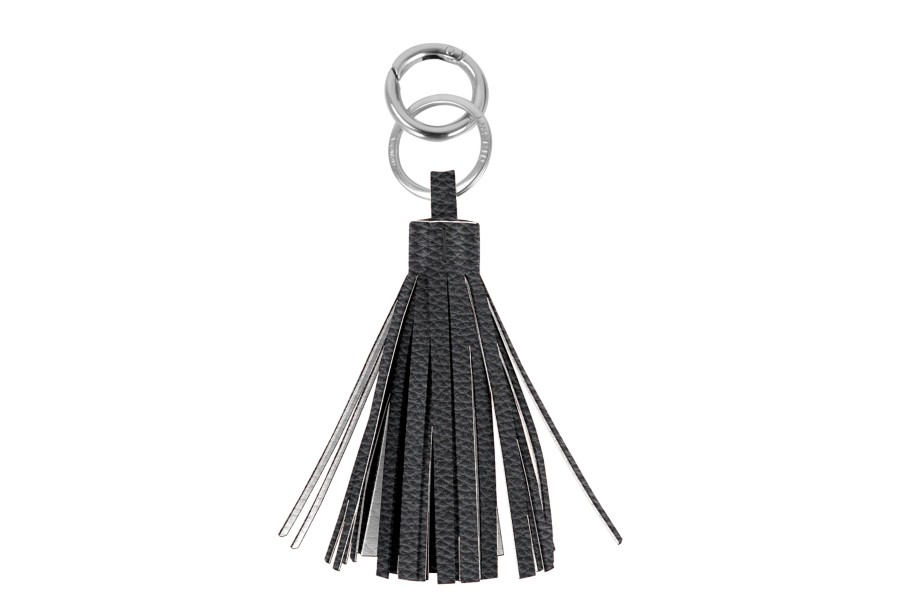 Tanto si lo utiliza solo como llavero o como borla para el bolso, este moderno accesorio de cuero es uno de los llaveros favoritos de las mujeres. Sus flecos de cuero tienen doble capa de auténtico cuero. Este llavero con borla tiene un acabado artesanal excepcional y viene con dos accesorios niquelados: un aro plano para las llaves y un mosquetón para afianzarlo al asa de su bolso. Medidas de los flecos: 10 cm