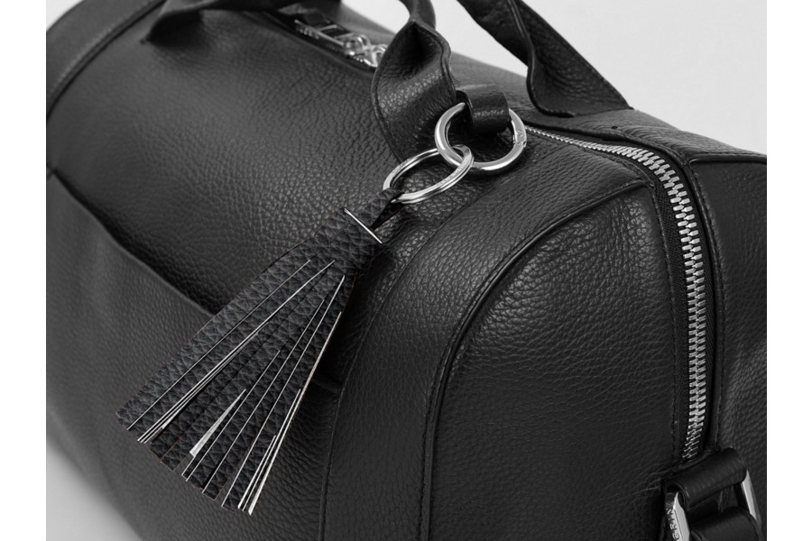 Llavero con borla - Negro-Blanco - Piel Grano