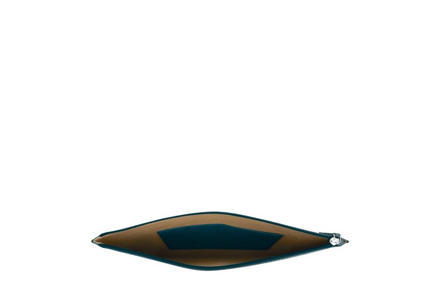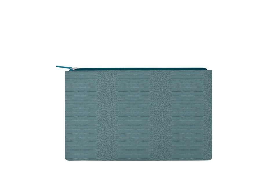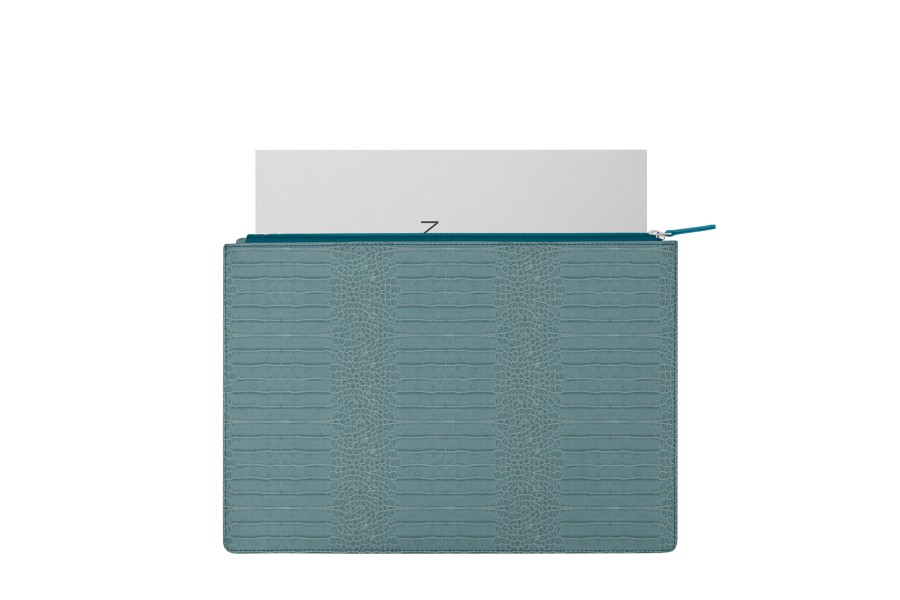 portadocumentos con cremallera - Azul turqués - Piel Coco Grabado