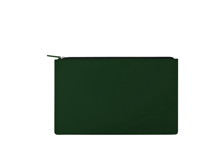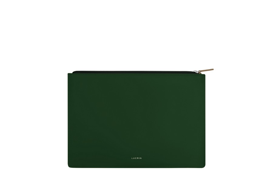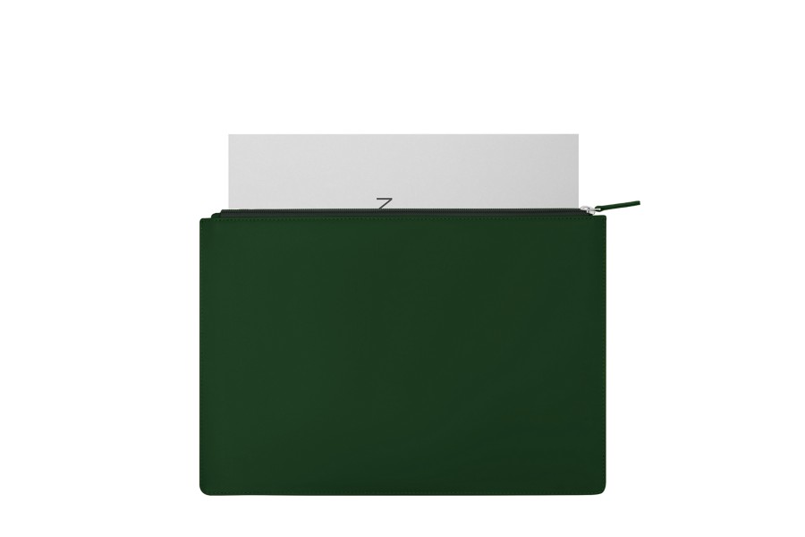 portadocumentos con cremallera - Verde Oscuro - Piel Liso