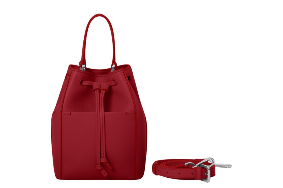 Este bolso mini bucket de la colección L5 de Lucrin es uno de los favoritos de las mujeres, y con razón. Es el acompañante ideal cuando hay que hacer recados o salir con amigos. Su tamaño relativamente pequeño permite que hagamos nuestras compras sin estrés y que guardemos nuestros artículos esenciales diarios de forma segura gracias al cierre con cordón de cuero. Exterior: tira ajustable para el hombro