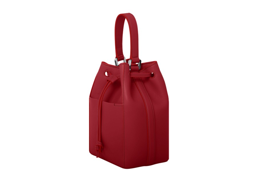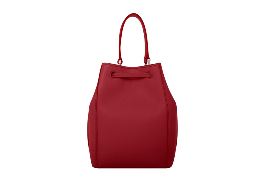 Bolso mini bucket - Amaranto-Blanco - Piel Grano