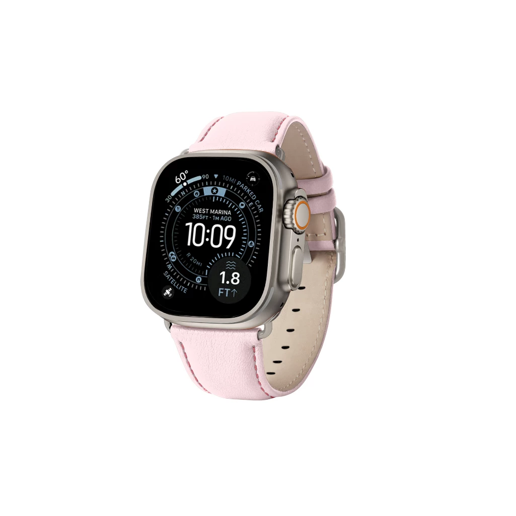 Correa de cuero para Apple Watch Ultra con hebilla clásica - Adaptador plateado - Rosa - Piel de becerro Rosa  - Piel de becerro lisa
