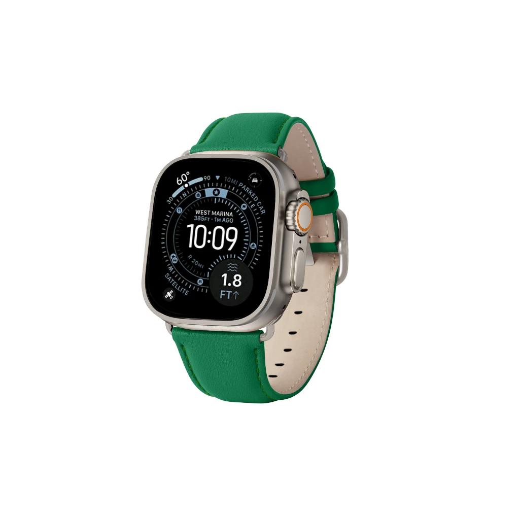 Correa de cuero para Apple Watch Ultra con hebilla clásica - Adaptador plateado - Verde claro - Piel de becerro Verde claro  - Piel de becerro lisa