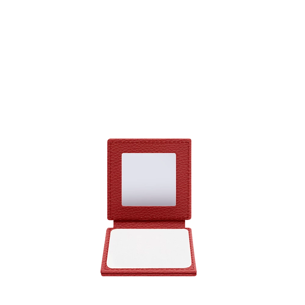 Espejo de bolsillo cuadrado Rojo  - Piel Grano