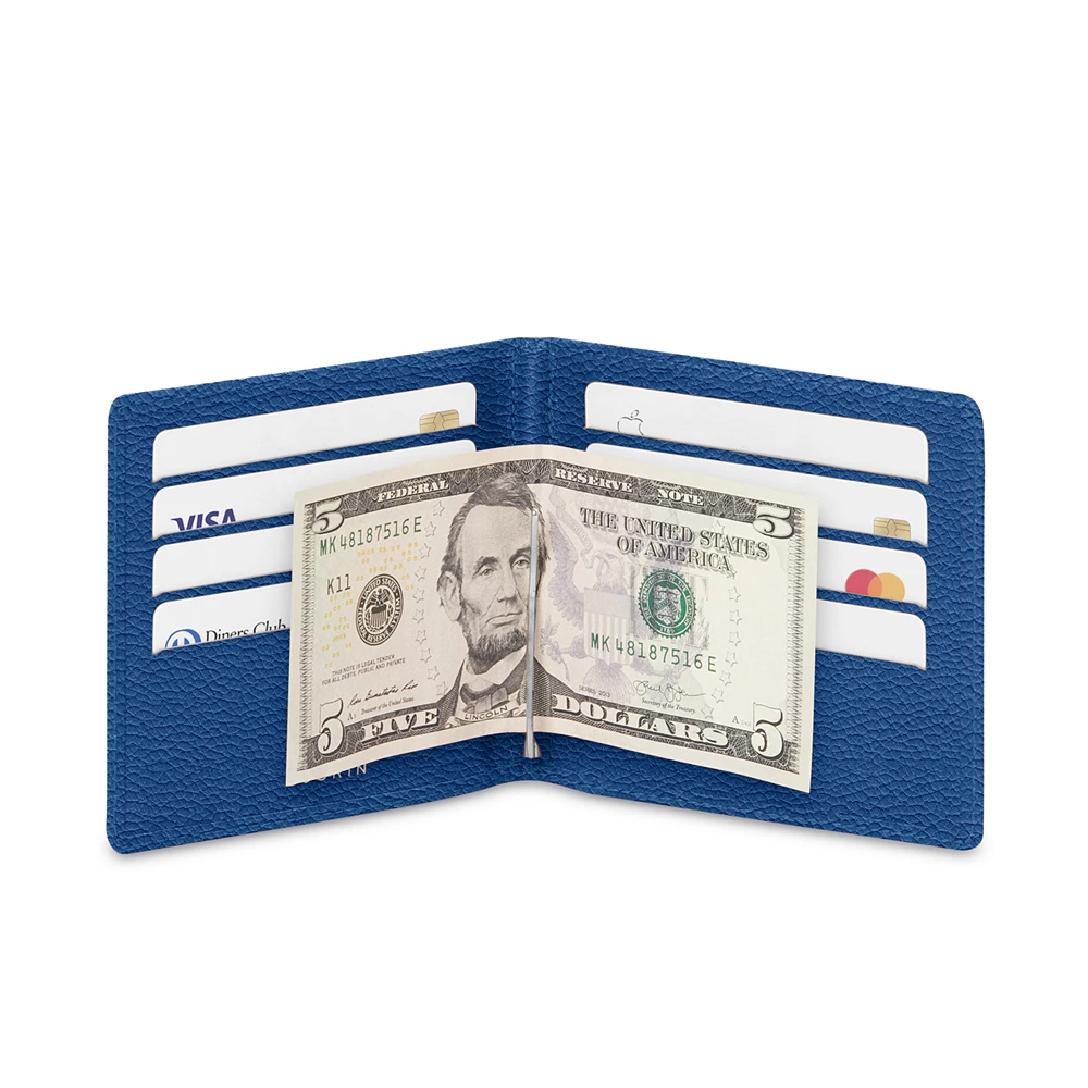 Tarjetero con clip para billetes y 8 tarjetas Cielo Azul  - Piel Grano
