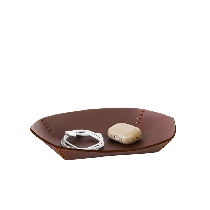 Crafted from full-grain leather, this leather catchall tray has a natural, unlined finish that enhances its raw beauty. The bevelled edges add a refined touch, while personalisation options—including leather colour, stitching, and a discreet monogram—allow you to make it truly yours.