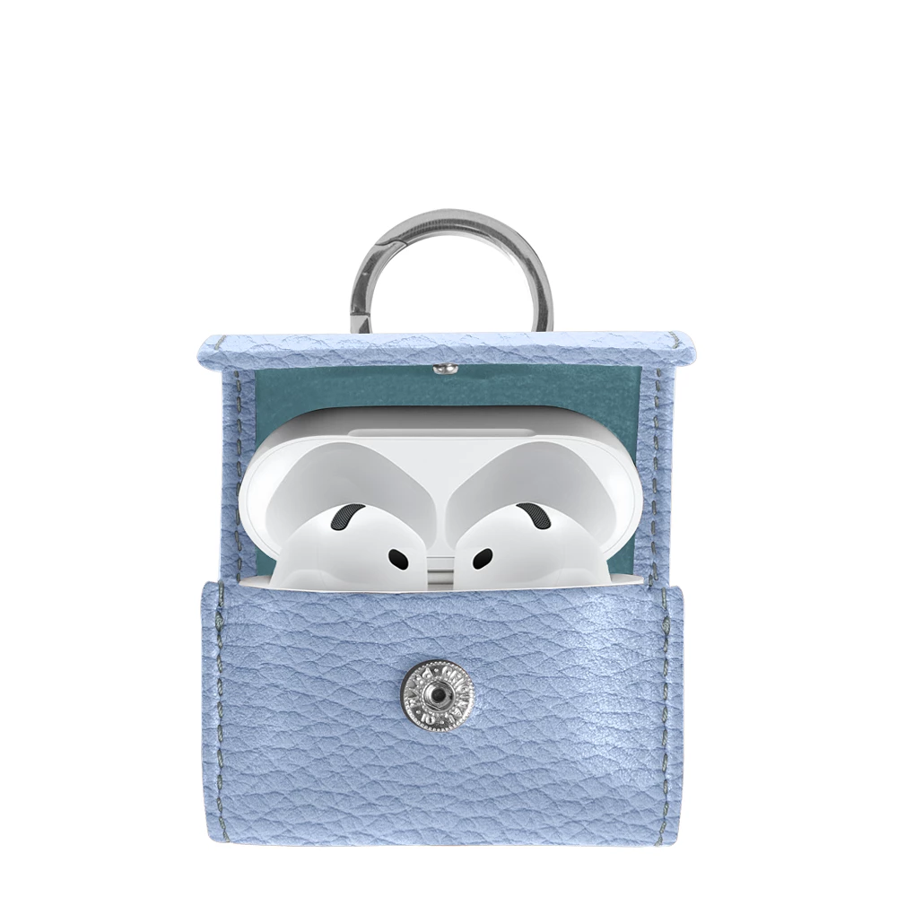 Funda AirPods 4 con mosquetón Azul ártico  - Piel Grano