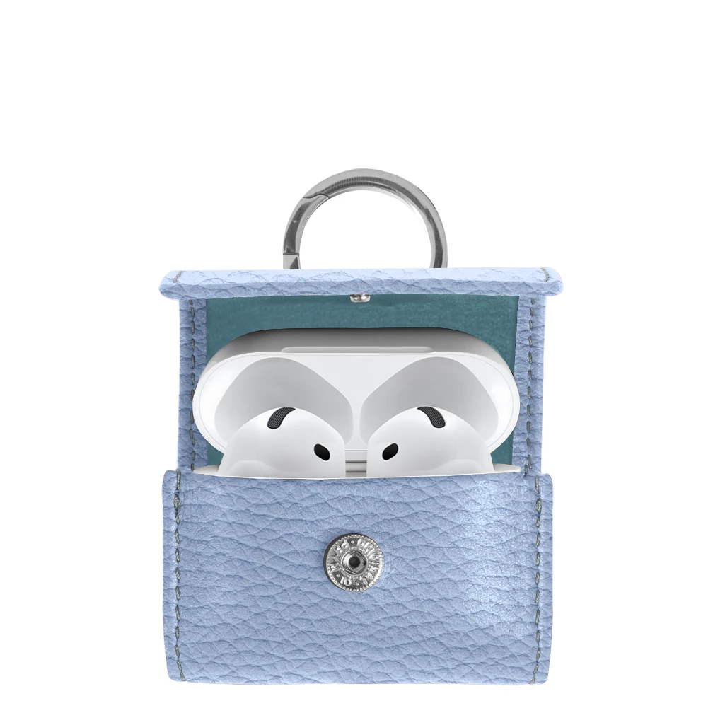 Funda AirPods 4 con mosquetón Azul ártico  - Piel Grano