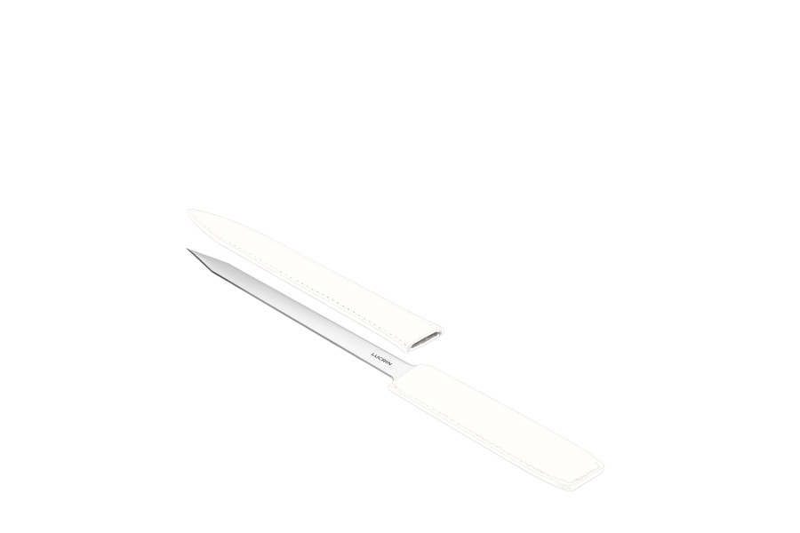Este abrecartas será uno de los artículos predilectos de los amantes de los objetos y accesorios hermosos. Este artículo combina perfectamente la elegancia y la funcionalidad. Presenta una hoja de 13.6 cm en metal de color plateado que te permite abrir sobres con la máxima facilidad y precisión. Cuando hayas terminado de usarlo, este abrecartas se guarda en su vaina de cuero, ¡como una espada! Gracias al mango" recubierto de cuero puedes estar seguro de que tendrás una sujeción firme al usar el abrecartas.