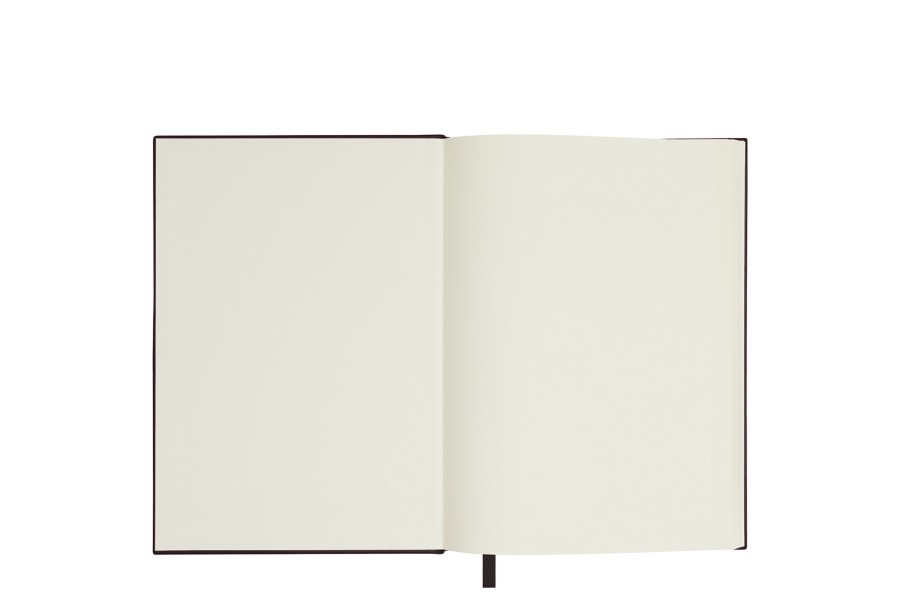 Hojas color marfil y lengüeta en cuero que sirve de marcalibros.