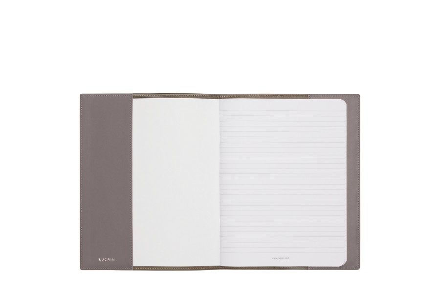 Hecha en auténtica piel de primera calidad, esta funda protectora para cuadernos de formato A5 (de alrededor de 50 páginas) es un productor bonito y duradero. Embellecerá el cuaderno convirtiéndolo en algo con mucha más clase. Es duradera, puesto que ha sido concebida por los mejores artesanos expertos en piel de Lucrin. El cuaderno se sostiene bien en su lugar gracias a dos tiras de piel en cada lado, en las que puedes deslizar la tapa dura del cuaderno.