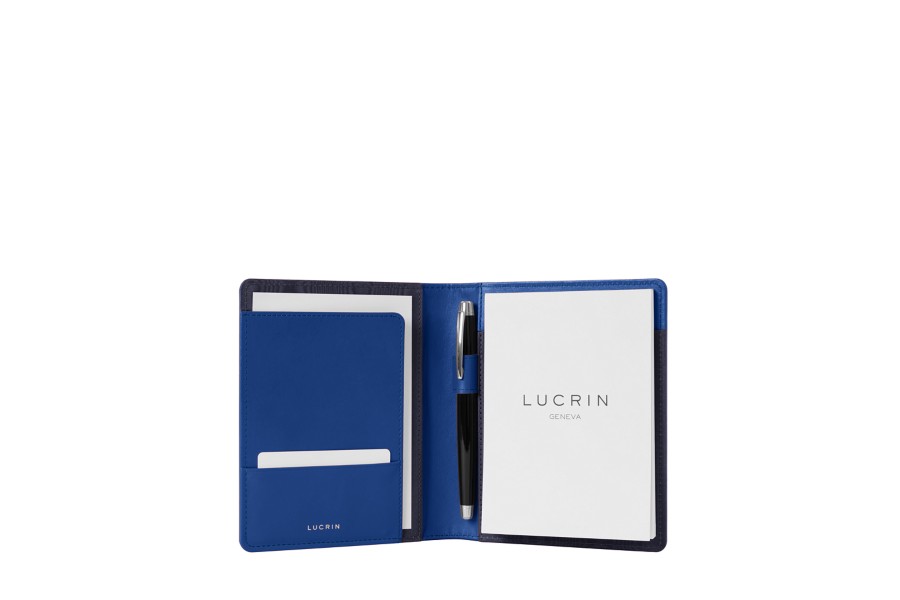 Presentamos un accesorio de escritorio muy apreciado por los profesionales: el portadocumentos A6 multifunción. Dotado de un bolsillo plano redondeado a la izquierda –con espacio para tarjetas de visita– y un bloc de hojas A6 a la derecha, este portadocumentos de piel de gama alta también dispone de un pasador para su bolígrafo preferido. Con este portabloc A6, tendrá todo a mano para sus citas o sus viajes de negocios. Tenga en cuenta que también puede comprar los recambios de bloc tamaño A6 en nuestro sitio web.
