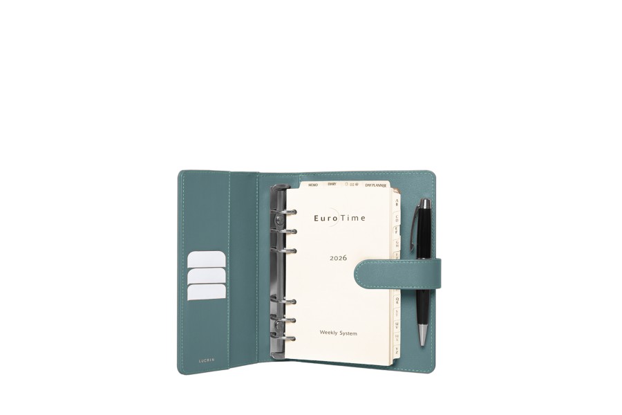 Interior: 3 espacios para tarjetas de crédito / hojas semanales en 6 idiomas / calendario completo 1 semana.