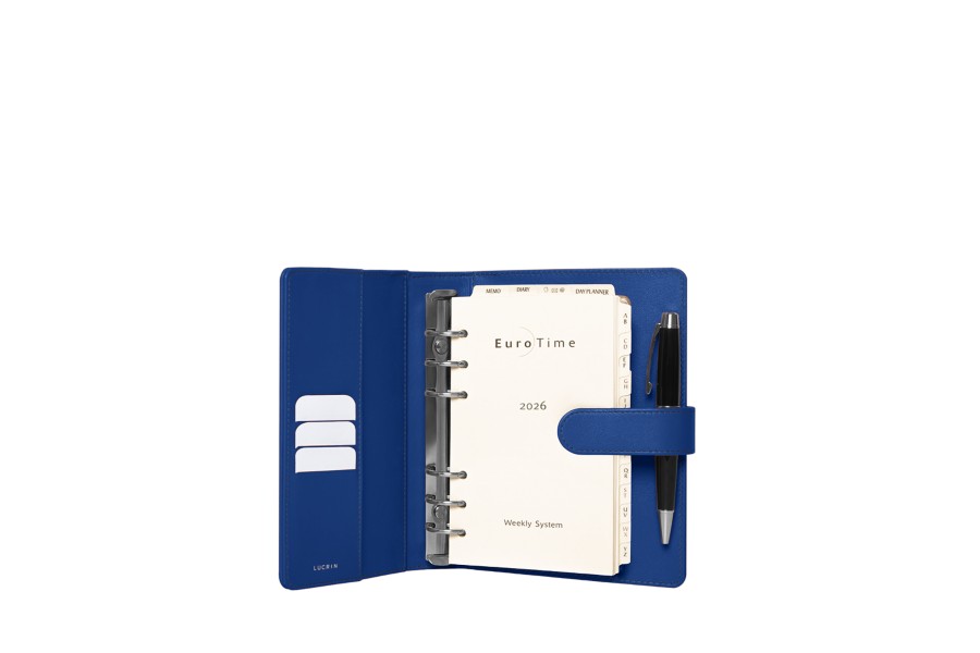 Interior: 3 espacios para tarjetas de crédito / hojas semanales en 6 idiomas / calendario completo 1 semana.