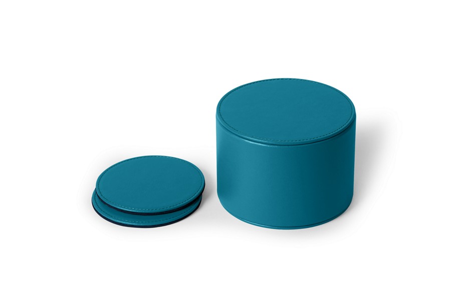 Conjunto de doce posavasos - Azul turqués - Piel Liso