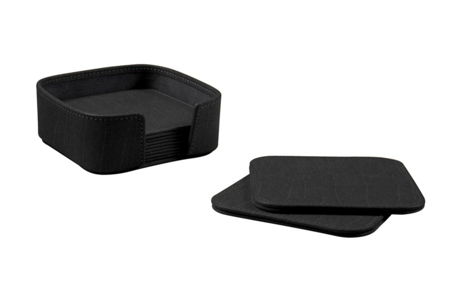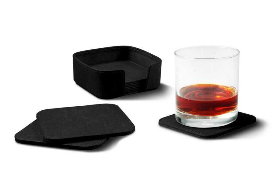 Juego de 6 posavasos cuadrados - Negro - Pelle rigenerata