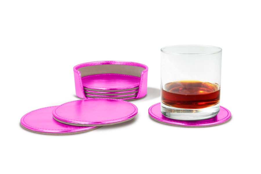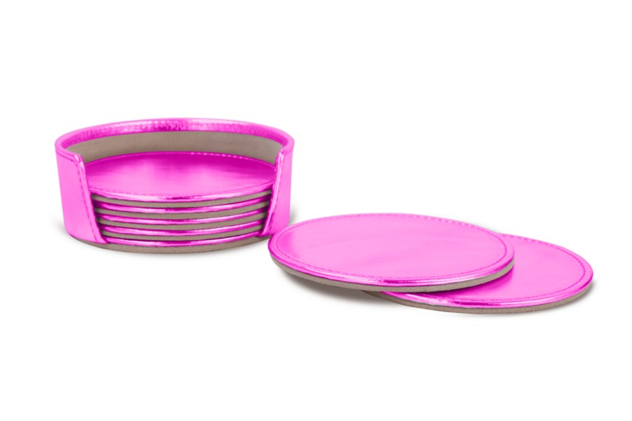 Conjunto de seis posavasos - Fuchsia - Piel Plata / Oro