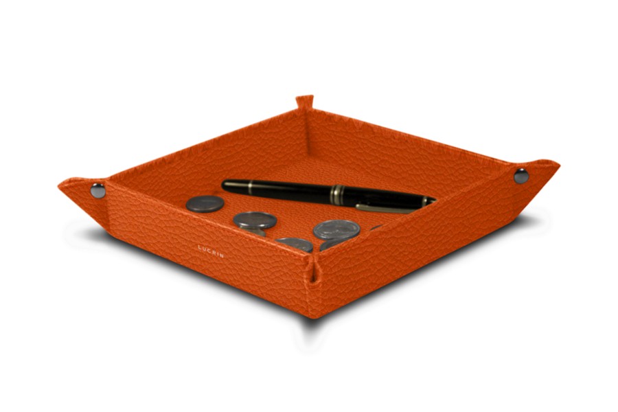 Vaciabolsillos cuadrada (16 x 16 x 3.5 cm) - Naranja - Piel Grano