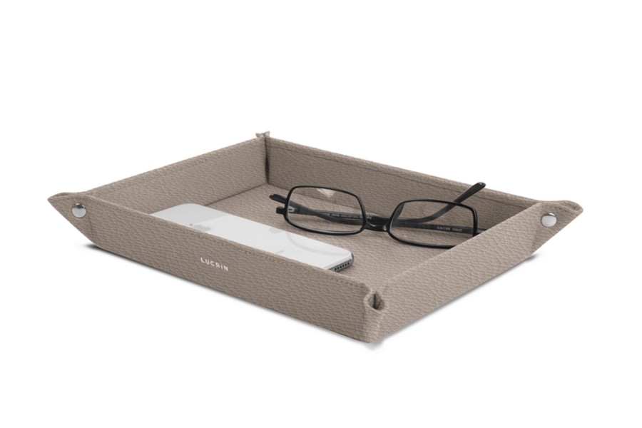 Vaciabolsillos rectangular grande (21.5 x 15.5 x 2.5 cm) - Taupe Luz - Piel Grano