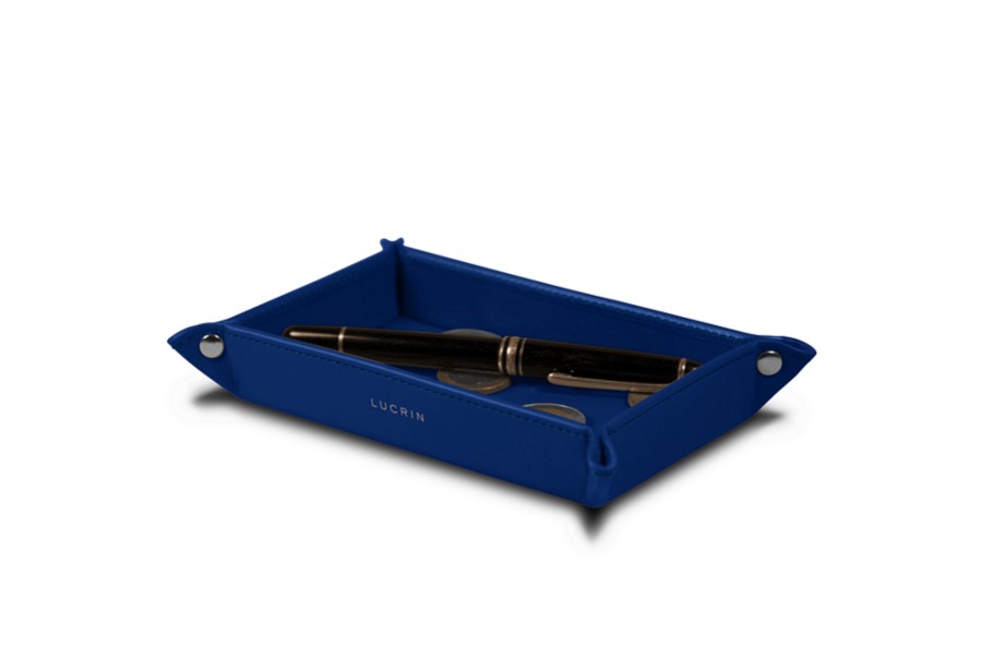 Aquí le presentamos al miembro más pequeño de la colección de bandejas organizadoras rectangulares de Lucrin. Su formato relativamente pequeño es ideal por ejemplo para colocar sus joyas antes de irse a dormir o dejar las monedas sueltas que lleve en los bolsillos. Esta pequeña bandeja multifunción u organizadora es un bello regalo que ofrecer a sus seres queridos, especialmente si elige acompañarla de una de las muchas opciones de personalización disponibles (colores, tipos de piel, iniciales, hilo, etc.)