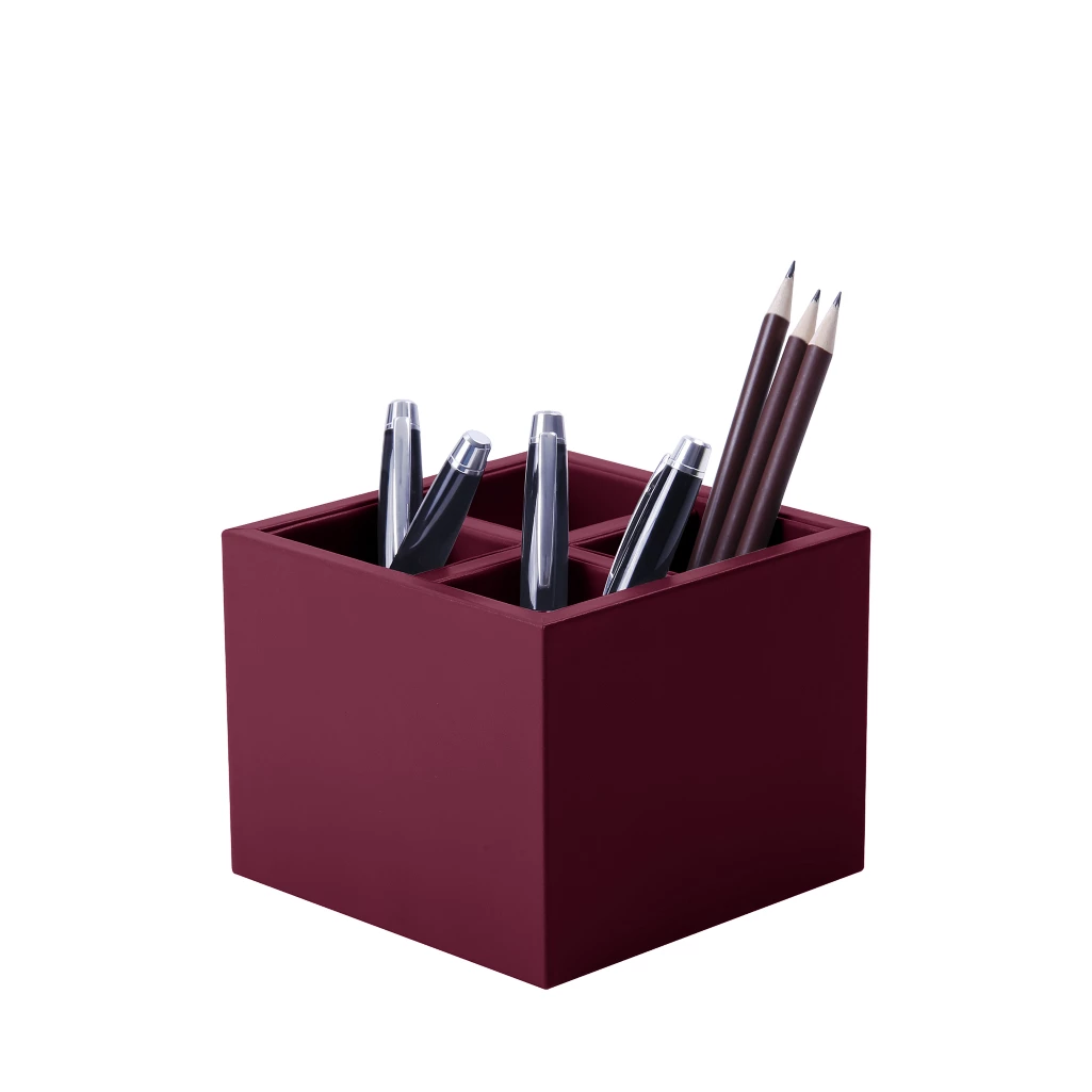 Organizador de bolígrafos grande - Cuadrado Burdeos  - Piel Liso